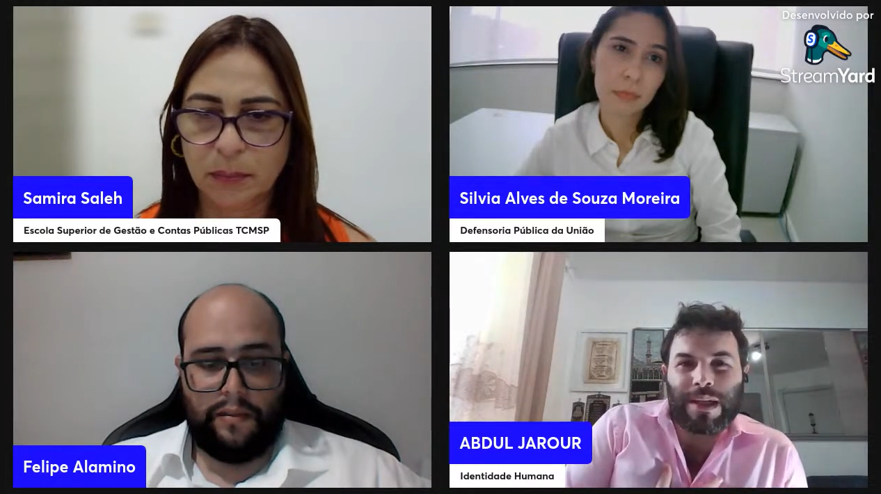 Para tratar desse tema fundamental, foram convidados os especialistas no assunto, como a defensora Pública Federal Silvia Alves de Souza Moreira; Abdul Jarour, nascido na Síria e naturalizado brasileiro, que é considerado uma liderança internacional pela causa da Migração e do Refúgio; e Felipe Nicolau Pimentel Alamino, doutor em Direito pela Universidade de São Paulo, especialista em Direito Internacional e co-organizador do Fórum Permanente sobre Genocídio e Crimes contra a Humanidade.
