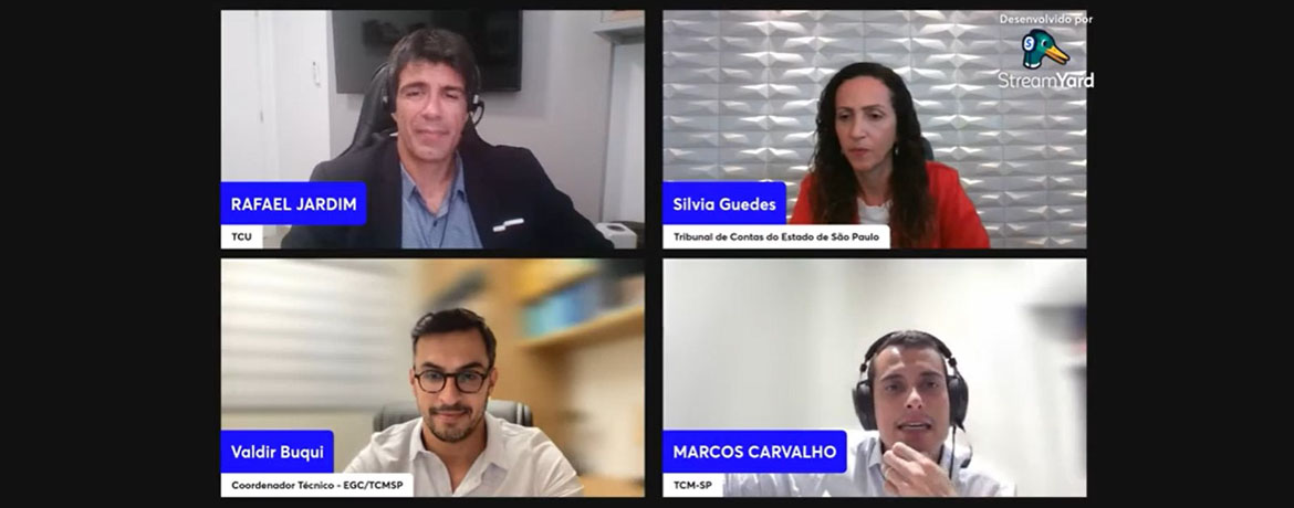 Quem tratou do tema foi ao auditor federal de Controle Externo do Tribunal de Contas da União (TCU), Rafael Jardim, que possui grande experiência no tema, tendo coordenado as fiscalizações do TCU referentes às obras da Copa do Mundo de 2014 e ocupado o cargo de secretário de Fiscalização de Infraestrutura de Petróleo e também de Fiscalização de Obras de Energia. O encontro teve como debatedores a engenheira civil e mestre em edificações pela Unicamp, Sílvia Guedes, assessora técnica de Engenharia do TCESP e professora da Escola Paulista de Contas Públicas do TCESP, e Marcos Carvalho, auditor de Controle Externo do TCMSP, supervisor da Coordenadoria VII de Obras Públicas do Tribunal.