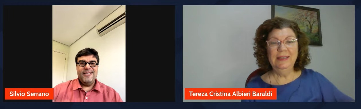 Em seguida, a mediação destacou que Tereza Baraldi é doutora em Educação e mestre em Direito, membro fundadora do Núcleo de Direitos Humanos e Cidadania de Marilia, lecionando matérias de direitos humanos na Academia de Polícia de São Paulo, onde trata da violência de gênero, feminicídio, violência sexual contra crianças e adolescentes e crimes raciais, entre outros temas específicos, além de metodologia da pesquisa científica.