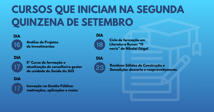 Os cursos são todos gratuitos e oferecidos na modalidade on-line!