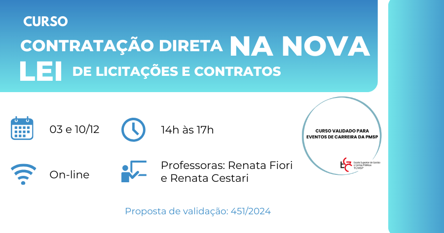 IMPORTANTE: Alguns cursos oferecidos pela Escola Superior de Gestão e Contas Públicas do Tribunal de Contas do Município de São Paulo serão validados para eventos de carreira para servidores da Prefeitura de São Paulo. A validação ocorrerá pelo Departamento de Gestão de Carreiras, órgão da Secretaria Municipal de Gestão (SEGES).