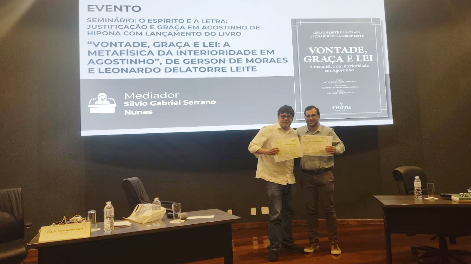 O período da tarde do sábado (22/03) registrou a realização de um seminário presencial promovido pela EGC, abordando o tema "O Espírito e a Letra: Justificação e Graça em Agostinho de Hipona". A iniciativa serviu para analisar o pensamento teológico de Santo Agostinho, como ficou conhecido um dos mais influentes filósofos e teólogos da Igreja Cristã. Os participantes foram convidados a refletir sobre as complexas questões de justificação e graça, temas centrais na obra de Agostinho, e a considerar suas implicações para a filosofia e a teologia modernas. O evento foi completado com o lançamento do livro “Vontade, Graça e Lei: A metafísica da interioridade em Agostinho”, de Gerson de Moraes e do palestrante Leonardo Delatorre Leite.